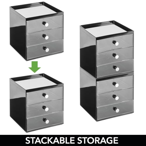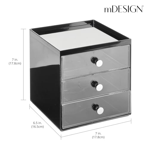 mDesign Makeup Organizer Storage Station Cube with 3 Drawers for Bathroom Vanity, Cabinet, Countertops – Holds Lip Gloss, Eyeshadow Palettes, Brushes, Blush, Mascara – Black/Clear