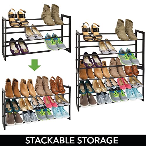 mDesign Metal 3 Tier Adjustable/Expandable Shoe and Boot Storage Organizer Rack – Space-Saving, Angled Vertical Storage – Closet, Entryway, Mudroom, Bedroom, Garage – Black