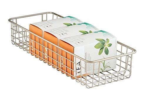 Specification: mDesign Metal Wire Food Storage Shallow Basket Organizer with Handles for Organizing Kitchen Cabinets, Pantry Shelf, Bathroom, Laundry Room, Closets, Garage – Concerto Collection – 4 Pack – Satin