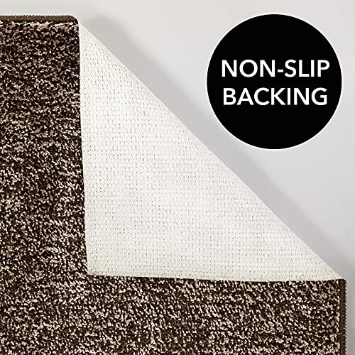 mDesign Non-Slip Microfiber Polyester Rectangular Spa Mat/Bath Rug, Plush Water Absorbent Accent Rug for Bathroom Vanity, Bathtub/Shower, Machine Washable, 60″ x 21″, Heathered Chocolate Brown