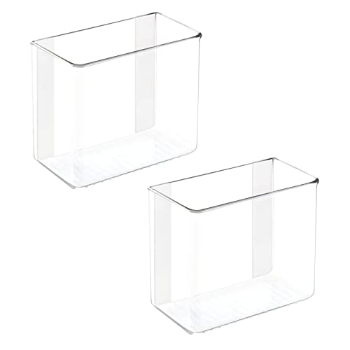 Specification: mDesign Plastic Adhesive Wall Mount Storage Organizer Container for Bathroom, Shower, Vanity Cosmetic Organization – Hold Shampoo, Conditioner, Vitamins, 6″ Wide, Poppon Collection, 2 Pack, Clear