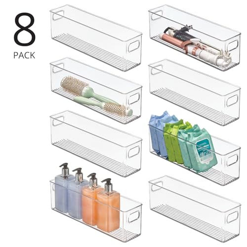 Specification: mDesign Plastic Bathroom Organizer – Storage Holder Bin w/ Handles for Vanity, Cupboard, Cabinet Shelf, Linen/Hallway Closets, Holds Styling Tools, Beauty Products – Ligne Collection – 8 Pack – Clear