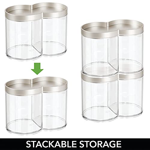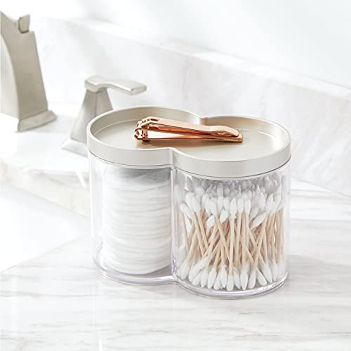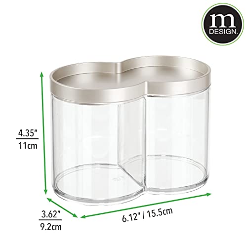 mDesign Plastic Canister Jar Organizer Set with Storage Lid – Home Decor Holder for Bathroom/Restroom Vanity Countertop, Cabinet – Holds Cotton Balls, Soap, Lumiere Collection, Clear/Matte Satin