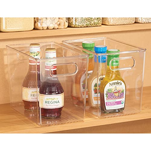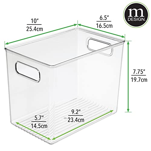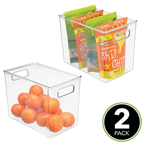 mDesign Plastic Deep Kitchen and Pantry Organizer Storage Bin with Handles for Cabinet, Fridge, Freezer – Food Storage Containers for Snacks, Yogurt Pouches or Fruit, Ligne Collection, 2 Pack, Clear