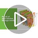 Clear plastic storage bins store produce, packaged goods, coffee pods, kitchen towels or linens, and more