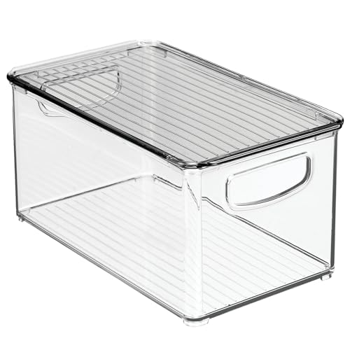 Specification: mDesign Plastic Deep Storage Bin Box Container with Lid and Built-In Handles – Organization for Fruit, Snacks, or Food in Kitchen Pantry, Cabinet, Cupboard, Ligne Collection, 4 Pack, Clear/Smoke Gray
