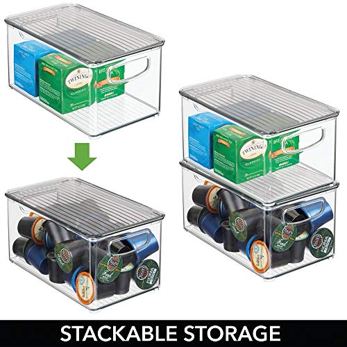 mDesign Plastic Deep Storage Bin Box Container with Lid and Built-In Handles – Organization for Fruit, Snacks, or Food in Kitchen Pantry, Cabinet, Cupboard, Ligne Collection, 4 Pack, Clear/Smoke Gray