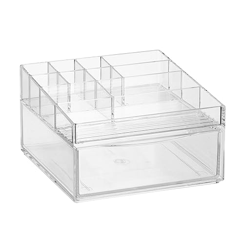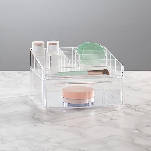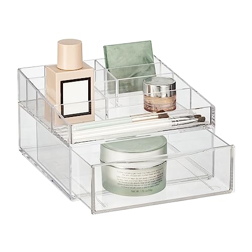 Specification: mDesign Plastic Divided Makeup Organizer Holder Bin with Front Drawer for Bathroom Vanity, Countertop Storage – Cosmetic Organization Holds Palettes, Brushes, Accessories – Cadi Collection – Clear