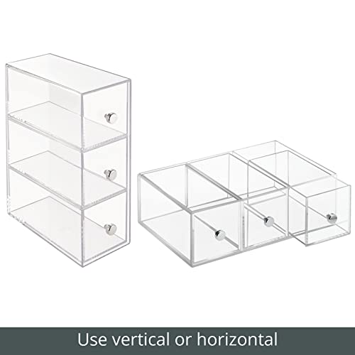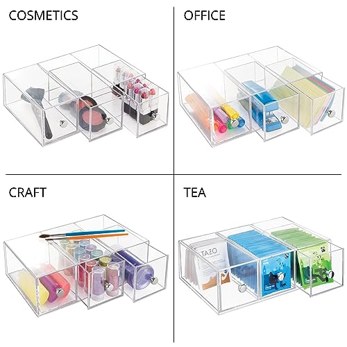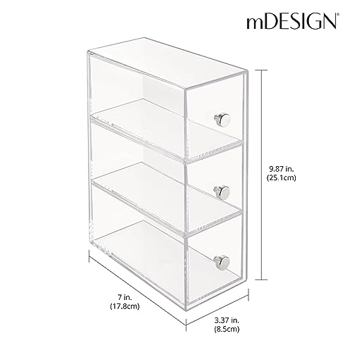 mDesign Plastic Kitchen Pantry Stackable Storage Organizer Container Station with 3 Drawers for Cabinet, Countertop, Holds Coffee, Tea, Sugar Packets, Creamers – Lumiere Collection – Clear