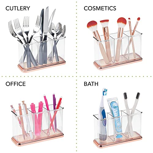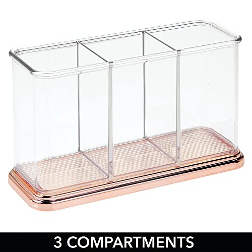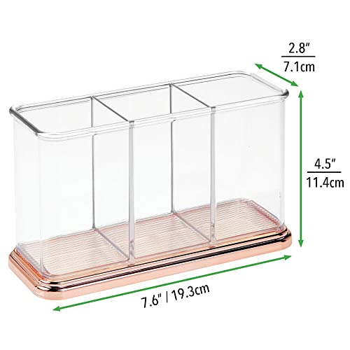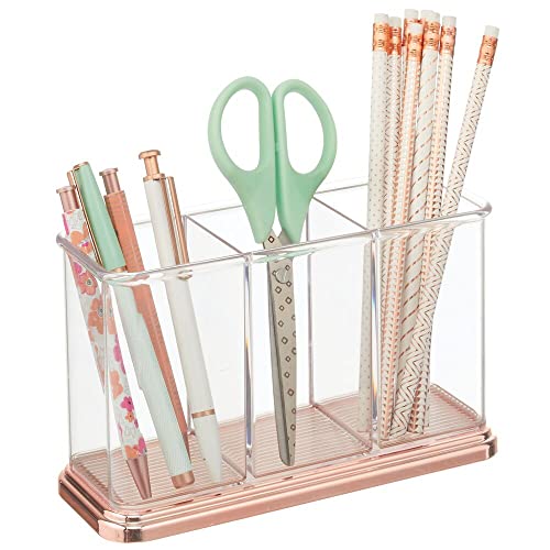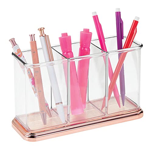 mDesign Plastic Organizer Cup Holder, Divided Storage Organizer for Desks, Office, Tables, Workspaces – Stores Pen, Pencils, Markers, Scissors – 3 Sections – Clear/Rose Gold