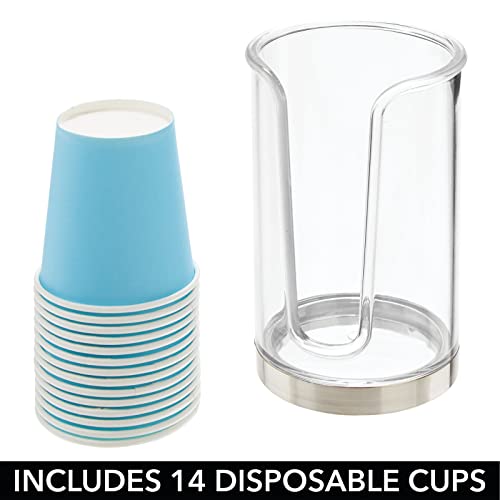 Specification: mDesign Plastic Small Compact Disposable Paper Cup Dispenser, Mouthwash Rinsing Cups Storage Holder for Bathroom Vanity Countertops, Makeup Table, Powder Room, Lumiere Collection, Clear/Brushed Chrome