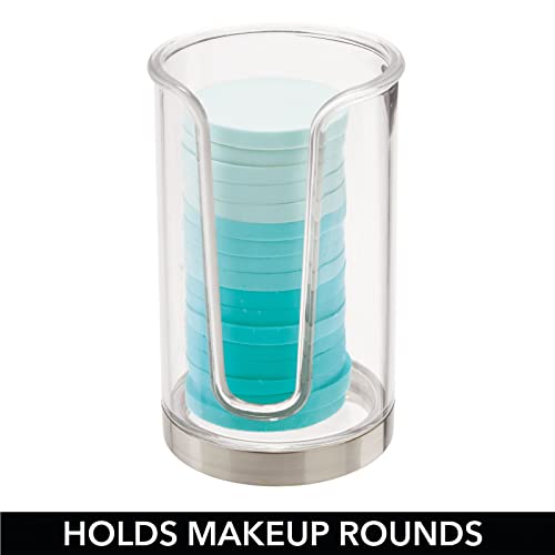mDesign Plastic Small Compact Disposable Paper Cup Dispenser, Mouthwash Rinsing Cups Storage Holder for Bathroom Vanity Countertops, Makeup Table, Powder Room, Lumiere Collection, Clear/Brushed Chrome