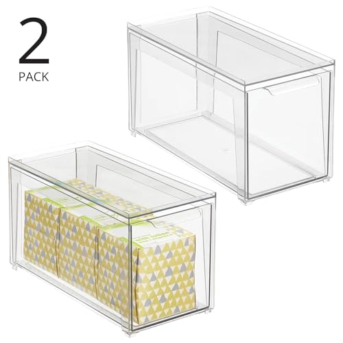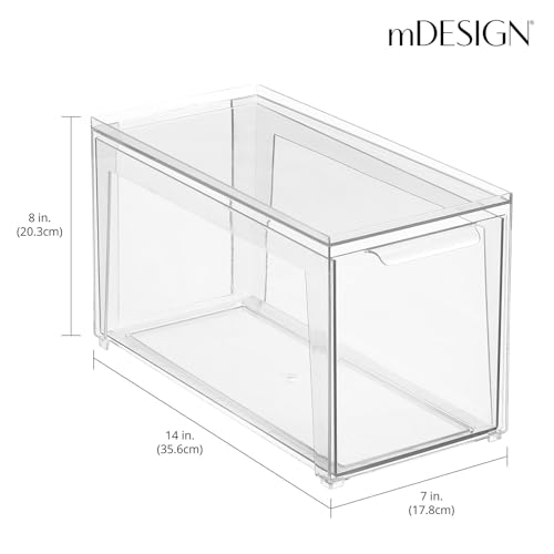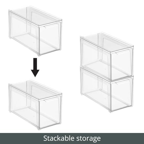 STACKABLE: The pull-out drawer opens easily, making it simple to grab what you need quickly; The bin’s clear construction lets you see what’s inside, so you can easily find what you’re looking for; The stackable design lets you maximize space by creating vertical storage; Use individually or together to create a custom storage system that works for you; Keep bathroom items contained, organized, and dust-free; mDESIGN TIP: Stack them vertically to maximize your storage potential- Stack and Store!