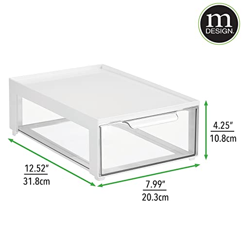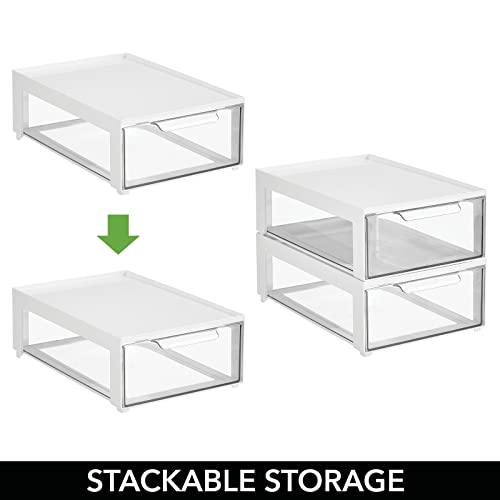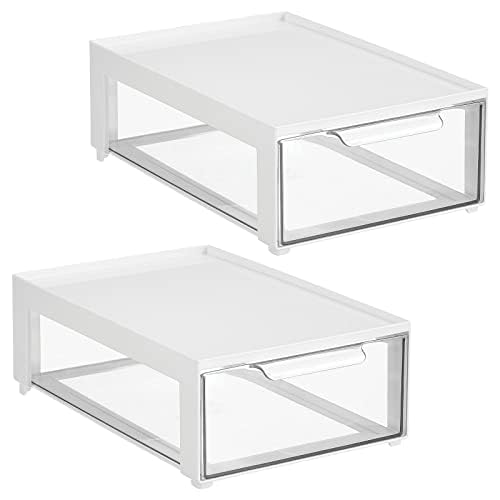 mDesign Plastic Stackable Office Storage Organizer Bin Containers with Front Pull Drawer for Cabinet, Desk, Shelves, or Closet Organization – Lumiere Collection – 2 Pack – White/Clear