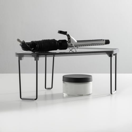 Specification: mDesign Plastic/Steel Corner Stackable Rack, Storage Organizer Shelf for Bathroom, Vanity, Countertop, Sink, Cabinet, Holds Makeup, Shower Accessories, Ligne Collection – 2 Pack – Black/Smoke Gray