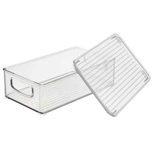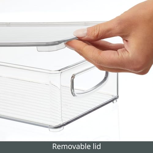 Specification: mDesign Plastic Storage Bin Box Container with Lid and Built-in Handles – Organization for Pens, Pencils, or Work Supplies in Home Office, Cabinet, or Desk Top, Ligne Collection – 4 Pack – Clear