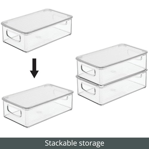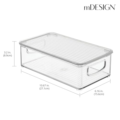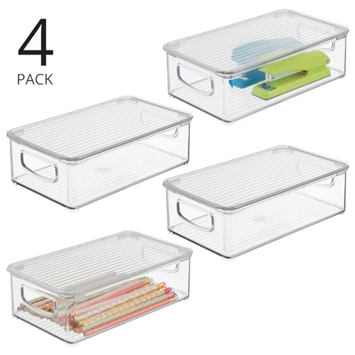 mDesign Plastic Storage Bin Box Container with Lid and Built-in Handles – Organization for Pens, Pencils, or Work Supplies in Home Office, Cabinet, or Desk Top, Ligne Collection – 4 Pack – Clear
