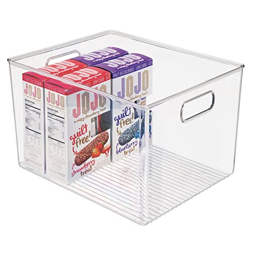 mDesign Plastic Storage Organizer Container Bin for Kitchen Organization in Pantry, Cabinet, Countertop Fridge, Refrigerator, and Freezer – Hold Food, Drink, or Snacks, Ligne Collection, 2 Pack, Clear