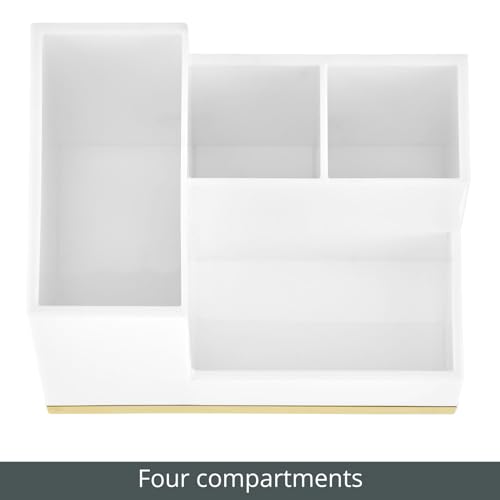 mDesign Plated Toothbrush and Toothpaste Holder – Storage Organizer Stand with 4 Compartments for Bathroom Countertop – Holders for Electric Toothbrush, Toothpaste – Hyde Collection – White/Soft Brass