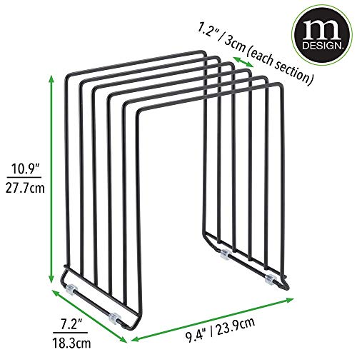 mDesign Pot Lid and Pan Rack — Metal Wire Rack for Cabinets, Pantries or Kitchen Surfaces — Freestanding Pan Stand with 5 Slots for Pans, Pots, Lids and Crockery — Black