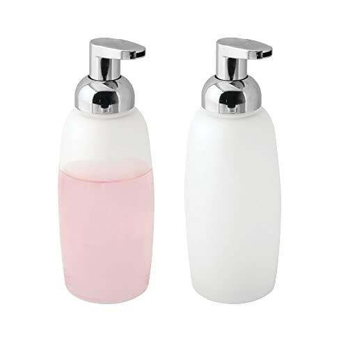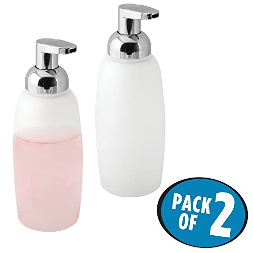 mDesign Refillable Glass Foaming Hand Soap Dispenser – Foam Soap Pump Bottle Container for Bathroom Counter Top – Decorative Foam Soap Dispenser – Malloy Collection – 2 Pack – Clear Frost/Chrome