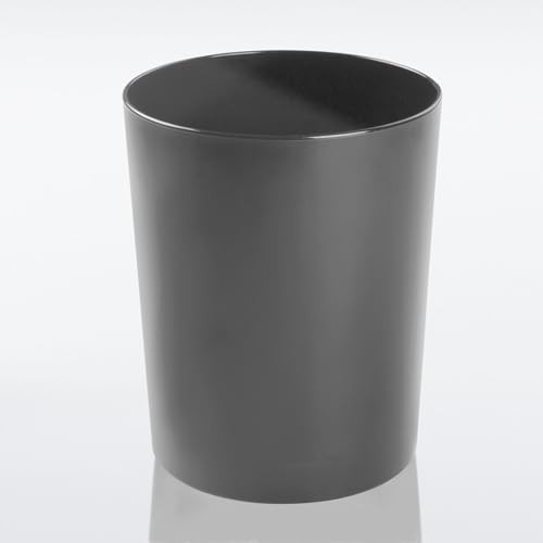 mDesign Round Metal Small 1.7 Gallon Recycle Trash Can Wastebasket, Garbage Container Bin for Bathrooms, Kitchen, Bedroom, Home Office – Durable Stainless Steel – Mirri Collection – Graphite Gray