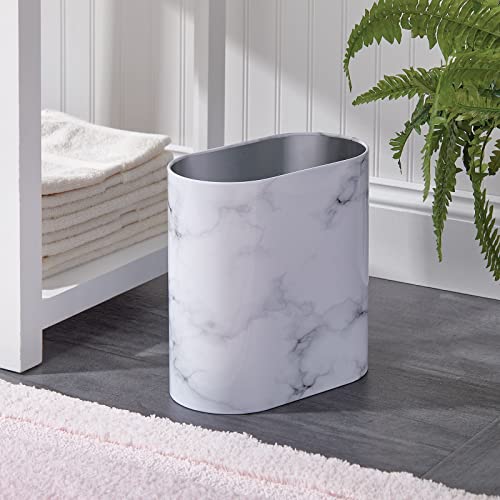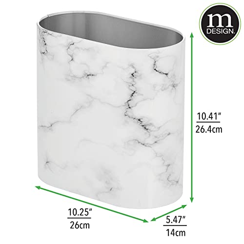 mDesign Slim Pill-Shaped Metal 1.98 Gallon/7 Liter Recycle Trash Can Wastebasket, Garbage Container Bin – Bathroom, Kitchen, Bedroom, Office – Durable Stainless Steel, Mirri Collection, White Marble