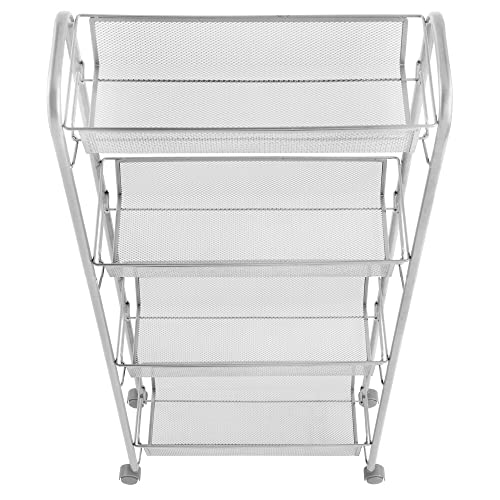 FUNCTIONAL & VERSATILE: This 4-tiered, shelving unit organizer can be used everywhere; The compact size and caster wheel design make it a handy helper throughout your home; Use in kitchens, pantries, bathrooms, bedrooms, garages, utility rooms, craft rooms, closets, offices, mudrooms, entryways and more for a simple storage solution; The compact size offers generous storage for homes, apartments, condos, college dorm rooms, RVs, and campers