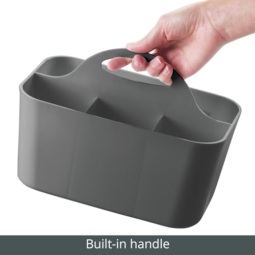 mDesign Small Plastic Shower/Bath Storage Organizer Caddy Tote with Handle for Dorm, Shelf, Cabinet – Hold Soap, Shampoo, Conditioner, Combs, Brushes, Lumiere Collection, Dark Gray