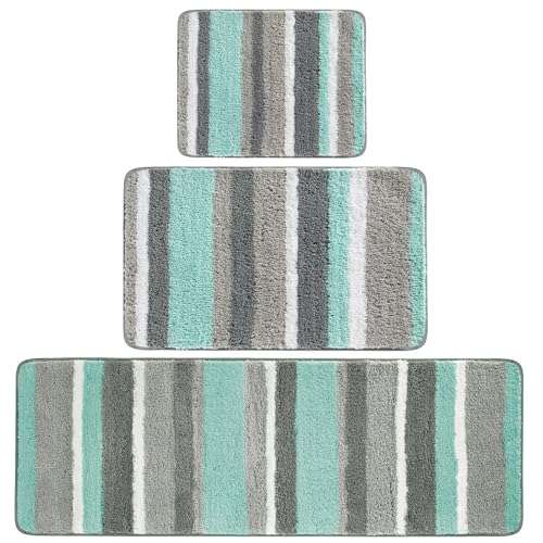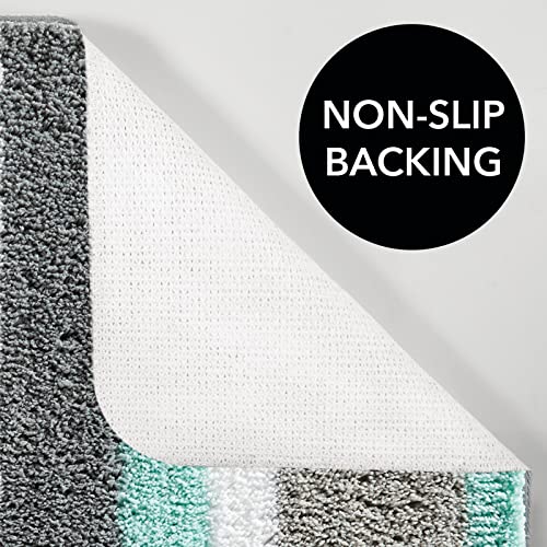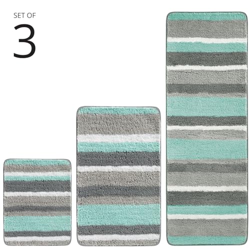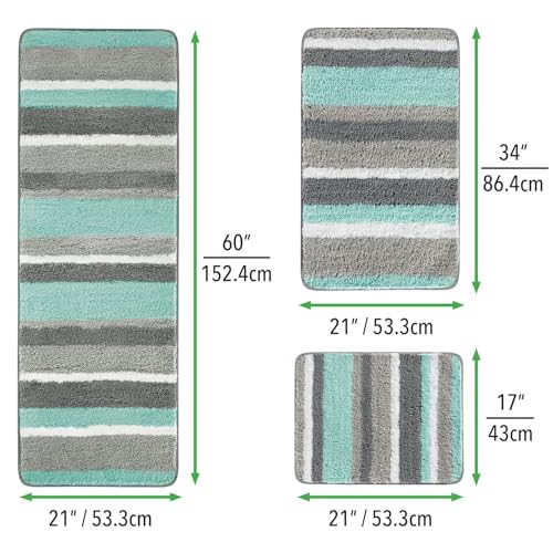 Specification: mDesign Soft Microfiber Polyester Spa Rugs for Bathroom Vanity, Tub/Shower – Water Absorbent, Machine Washable – Plush Non-Slip Rectangular Accent Rug Mat -Striped Design, Set of 3 Sizes – Mint/Gray