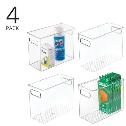 Specification: mDesign Tall Plastic Storage Organizer Container Bin, Office Organization for Filing Cabinet, Cupboard, Shelves, and Desk – Holds Notepads, Pens, Pencils, Highlighters, Ligne Collection, 4 Pack, Clear