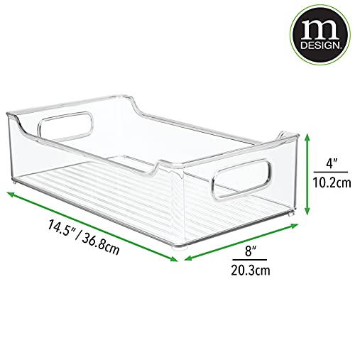 Specification: mDesign Wide Plastic Kitchen Storage Container Bins with Handles -Organization in Pantry, Cabinet, Refrigerator or Freezer Shelves – Food Organizer for Fruit, Yogurt, Squeeze Pouches – 4 Pack – Clear