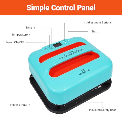 Specification: MECOLOUR Heat Press Machine for T-Shirts 12″X10″, Heat Transfer Machine 110V for Sublimation,Tote Bags,Pillows,Dresses, Fast Heating, High Pressure, Precise Temperature Control, Insulated Safety Base