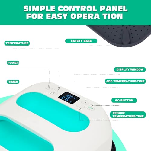 Fast & Evenly Heating Up : After testing, Using our heat press will save your heat and transfer time about 50% compared with other regular iron. Meanwhile, our iron press & soleplate adopts durable and high-temperature resistant materials without deform & melt, the maximum temperature can reach to 410°F/210°C. Even if the heat press machines works for a long time, the handle won’t burn your hands due to overheating. Say goodbye to burn your design project with our professional heat press.