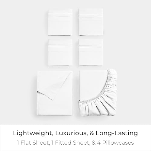 Mellanni Queen Sheet Set – 6-Piece Iconic Collection Bedding, (Including 4 Pillowcases), 16-Inch Deep Pocket, Easy Care, Extra Soft, Cooling Sheets, Brushed Microfiber – White