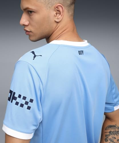 Show your unwavering support with the Manchester City Home Jersey 2025/26 – a perfect blend of heritage and performance. Featuring PUMA’s dryCELL technology to keep you cool and comfortable during any activity. For the first time in club history, the home kit features the iconic sash, once reserved for away kits, now reimagined in classic Sky Blue. It’s a strong connection to our past and a bold statement for the future, representing the spirit of City: doing things our way, on and off the pitch. Other signature details include an embroidered Manchester City crest, PUMA Cat logo, and “CITY” printed on the back neck. Mesh shoulder panels and curved side inserts offer breathability and a dynamic fit, making it ideal for both matchday and everyday wear.