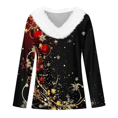 Specification: Merry Christmas Sweaters for Women Faux Fur Trim V Neck Sweatshirts Graphic Xmas Long Sleeve Holiday Pullover