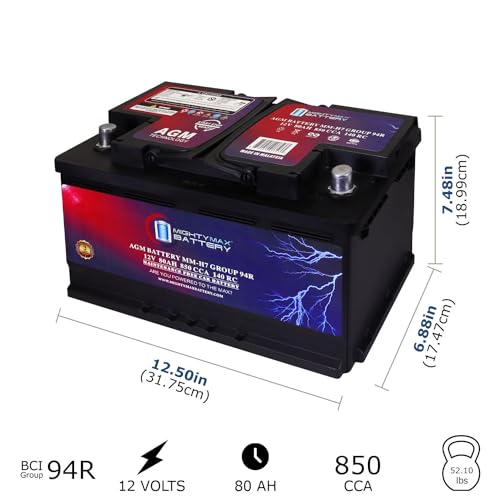 Specification: Mighty Max Battery MM-H7 Start and Stop Car BCI Group Size 94R 12V 80AH, 140RC, 850 CCA Rechargeable AGM Car Battery