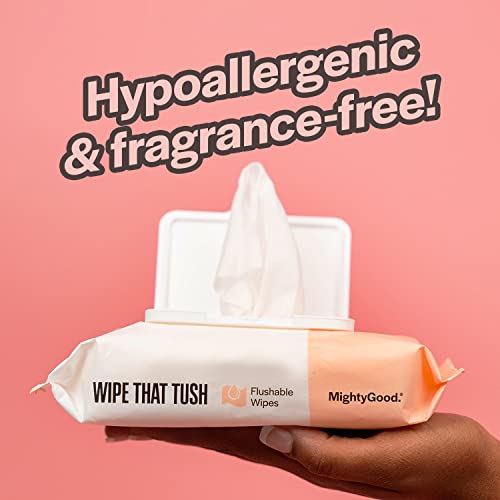 MightyGood. Wipe That Tush Flushable Wipes – 2 Packs of 50-100 Total – Hypoallergenic & Fragrance-Free Wipes with Aloe – Flushable Tested & Septic-Safe
