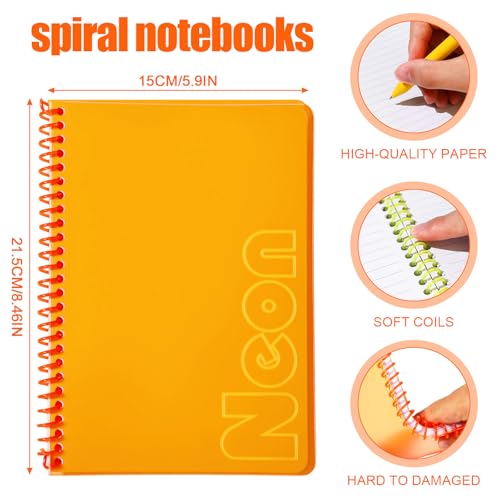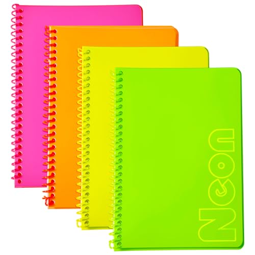 Specification: miikoul 4 Pack A5 Neon Spiral Lined Notebooks, 8.3″ X 5.5″, 80 Sheets/160 Pages Wide Ruled Notebook Spiral Journals Bulk Softcover Cover Notepad Color-Coded for Students Taking Class Notes Home Office (4)