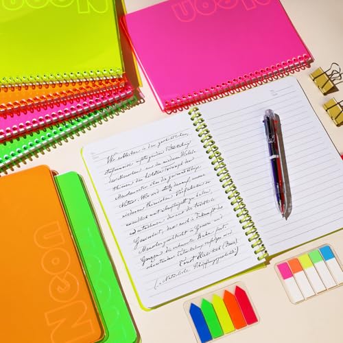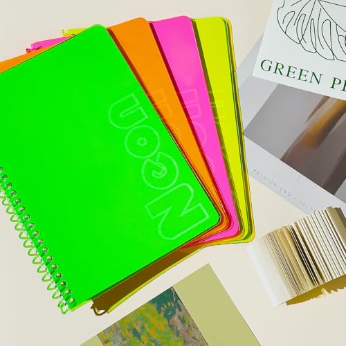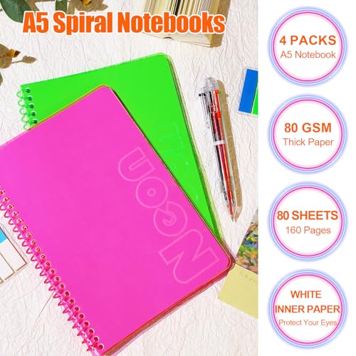 Product Packaging: Our neon notebooks are impossible to miss! You will receive 4 pack A5 neon softcover spiral notebooks, Assign each vibrant color (Pink, Green, Orange, Yellow) to a specific subject, project. Grab the right one instantly, saving time and reducing stress. each with 80 sheets /160 pages providing ample space for notes and assignments. These notebooks feature 4 eye-catching fluorescent covers, which can help you identify your subjects at a glance with color-coding efficiency