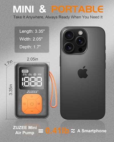 Engineered for Rapid Inflation – Dominate your ride prep with the ZUZEE mini bike pump – hits 80-100 PSI in 30 seconds (700x23C tires) and revives flat road bike tires (0-80 PSI) in 90 seconds. 3X faster than manual pumps with optimized airflow path. Tubeless-ready for road bikes, e-bikes, MTBs, and commuter bikes. More riding, less waiting!