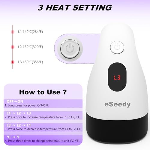 3 Heat Settings: The eSeedy small iron offers 3 heat settings for your transfer needs; Low: 284℉ (140℃), Medium: 320℉ (160℃), High: 356℉ (180℃); Press the button to switch modes, allowing precise control over heating levels for various projects; It will remember your last selected level for the next use