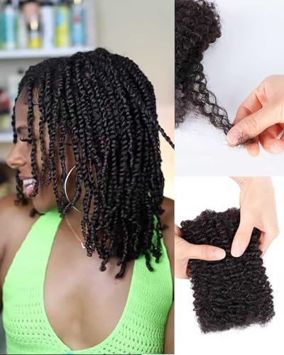 Mini Twist Afro Kinkys Bulk Human Hair-curly Human Braiding Hair Bundles for Dreadlocks Extensions Repair Micro Locs Extensions(Natural Black, 10Inch,30gram/Pack)