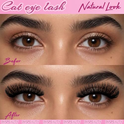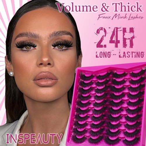 Specification: Mink Lashes 20mm Faux Mink Lashes Cat Eye Big Long False Eyelashes Dramatic Soft 3D Volume 20 Pairs Strip Eyelashes Pack by INSPEAUTY
