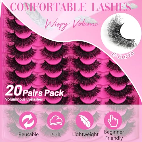 Mink Lashes 20mm Faux Mink Lashes Cat Eye Big Long False Eyelashes Dramatic Soft 3D Volume 20 Pairs Strip Eyelashes Pack by INSPEAUTY