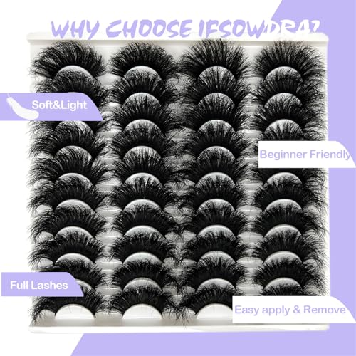 Mink Lashes Fluffy Wispy 20mm 3D Volume Full Dramatic Faux Mink D Curl Long Strip Lashes Pack 25 mm Big Cat Eye False Eyelashes
