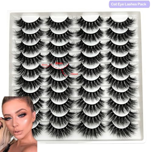 Mink Lashes Wispy Natural Fluffy Cat Eye Lashes Pack Volume 18mm D Curl Strip Eyelashes Bulk Faux Mink 3D False Eyelashes Natural Look (20 pairs)