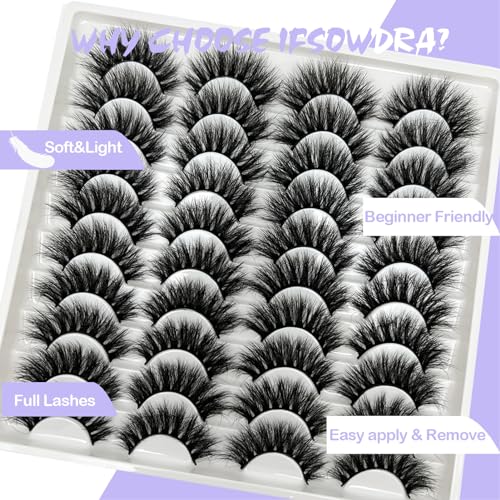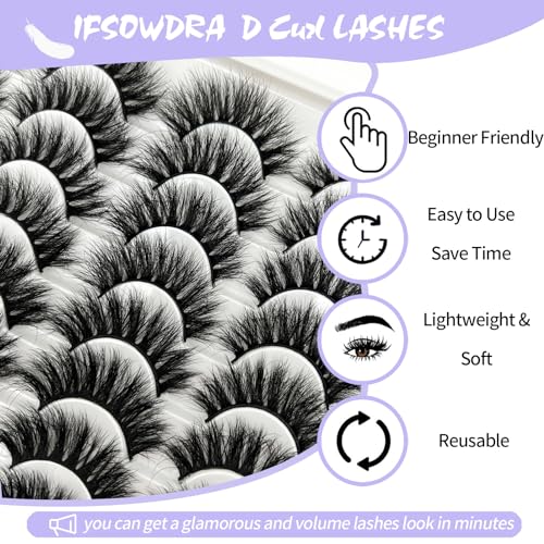 Specification: Mink Lashes Wispy Natural Fluffy Cat Eye Lashes Pack Volume 18mm D Curl Strip Eyelashes Bulk Faux Mink 3D False Eyelashes Natural Look (20 pairs)
