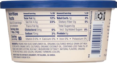 Specification: MIYOKO’S CREAMERY Organic Oat Milk Butter, Spreadable, Hint of Sea Salt, 12 Oz Tub, (1-Pack)